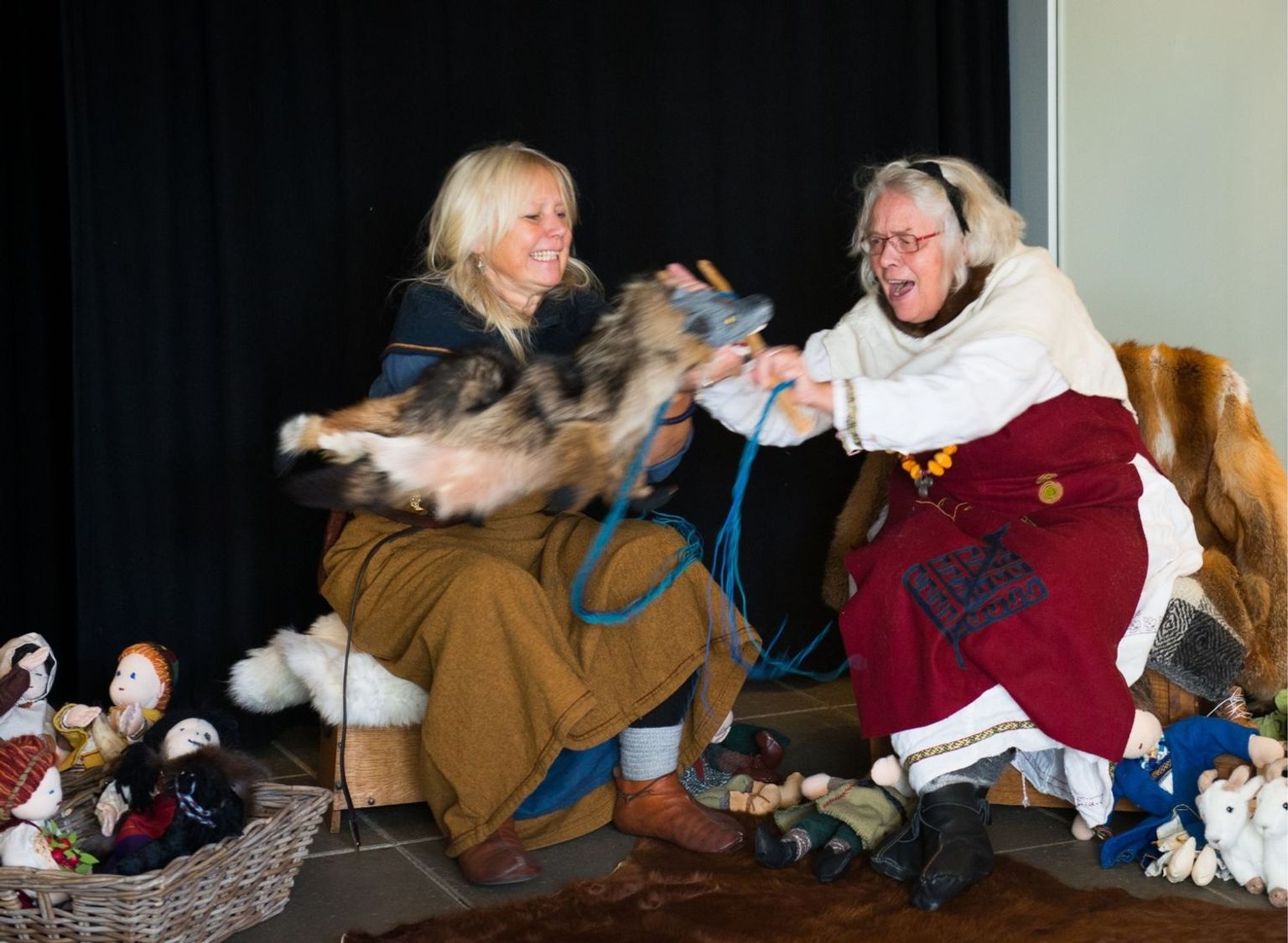 Vikingerne fortalte vilde historier om deres guder. Nu kan I møde nogle af dem gennem dukketeater, og I skal selv være med til at fortælle! Hvad sker der når den farlige ulv Fenris stikker af? Kan guderne fange den igen? Efter teatret leger vi vikingelege eller laver håndværk.