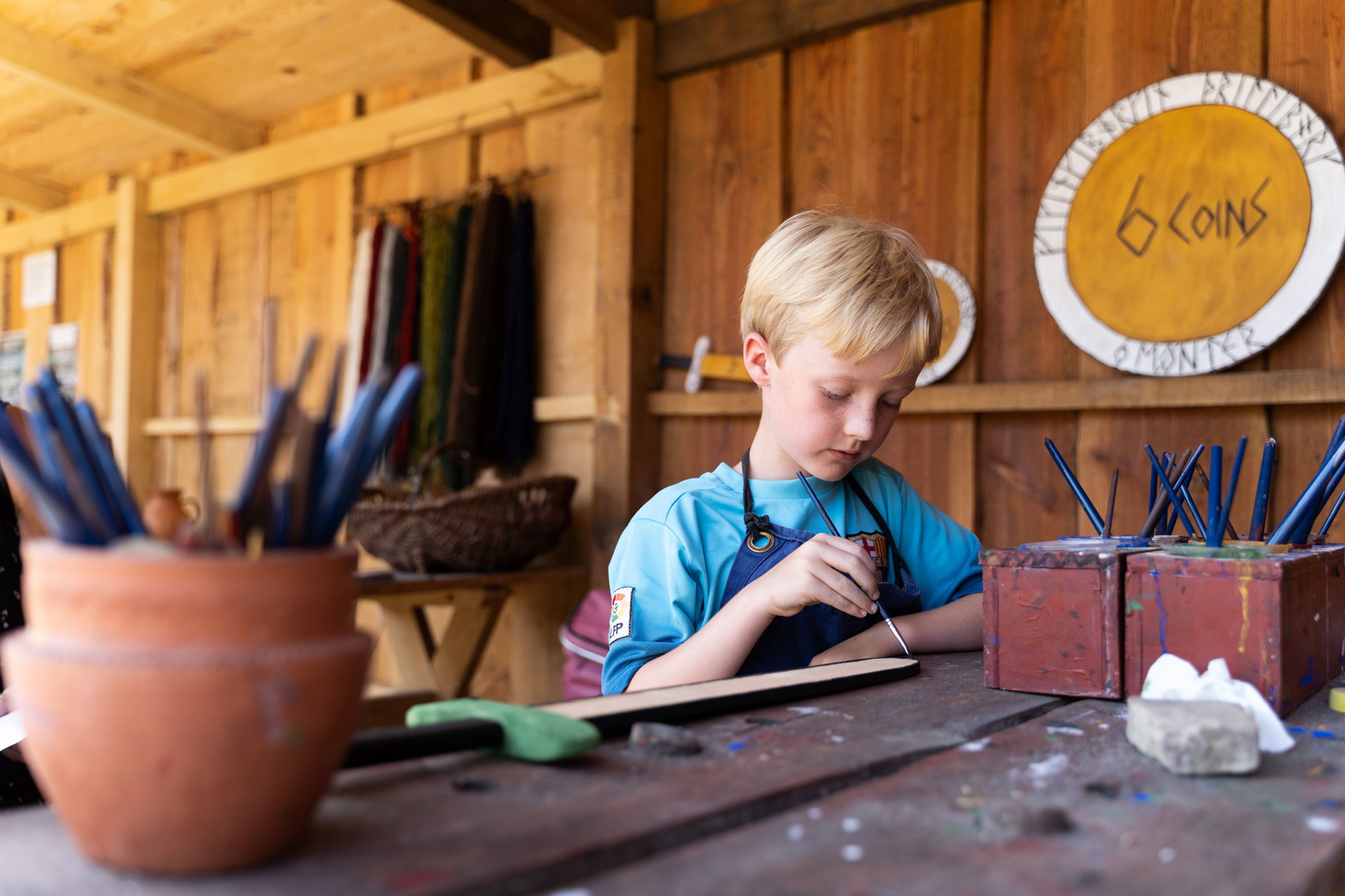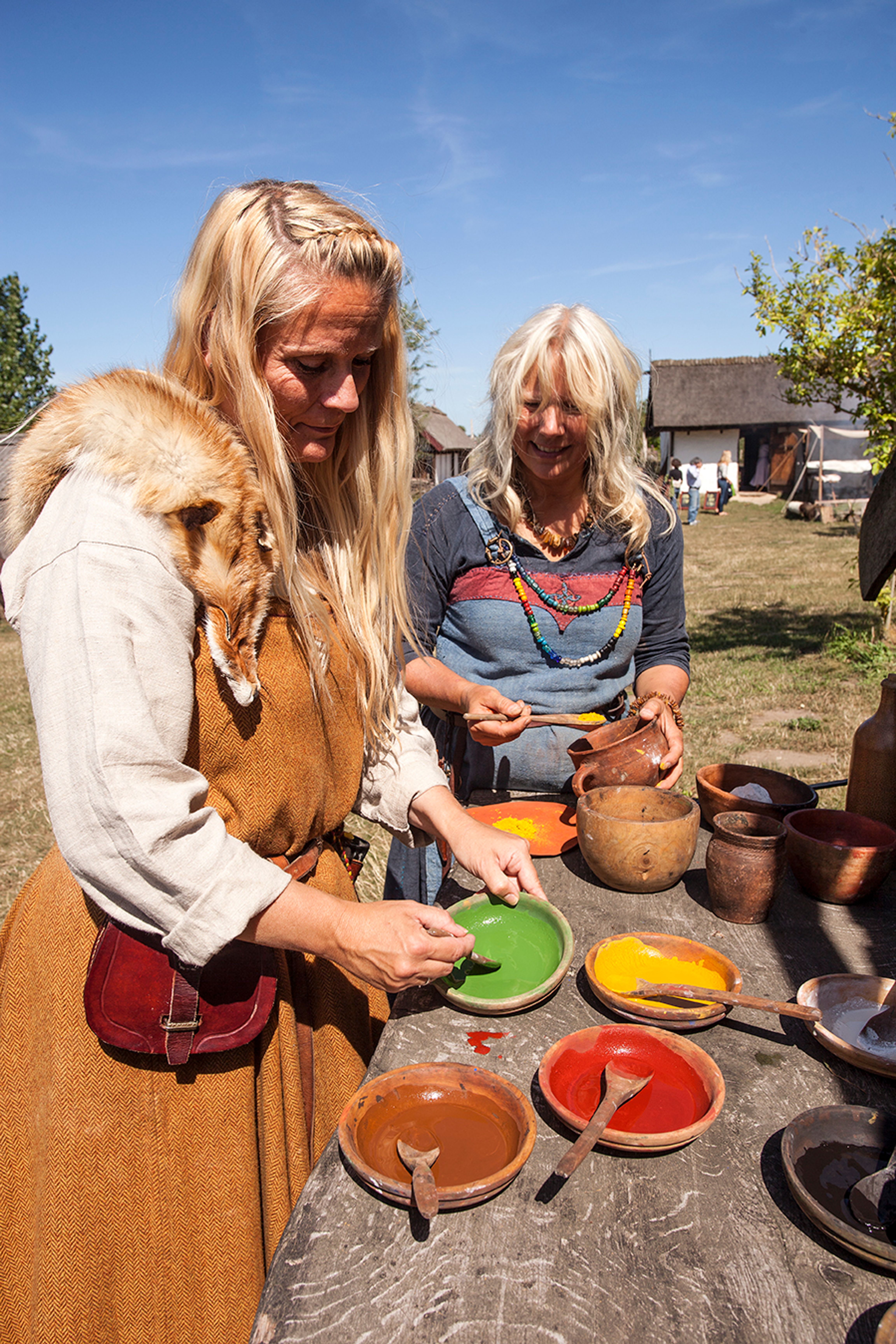 Eleverne knuser okker, brænder kul og blander naturpigmenter, som vikingerne gjorde det. De lærer om importerede kostbarheder som lapis lazuli fra Konstantinopel og hjemmelavede plantefarver. Gennem praktisk arbejde får klassen indblik i, hvordan arkæologer finder mikroskopiske farvespor på 1.000 år gamle fund. Forløbet kombinerer håndværk, naturvidenskab og kulturhistorie i én oplevelse.